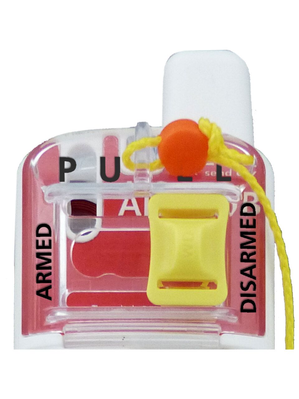 Neben der Aussendung einer Notfallmeldung im „closed loop“ an bis zu 8 Schiffe sendet der easy2-MOB dank dem DSC Empfänger nun auch im „openloop“. Wird der easy2-MOB im Falle einer „MAN OVER BOARD“ Situation durch Wasserkontakt automatisch aktiviert, wird innerhalb von ein paar Sekunden ein DSC distress call ausgesendet. Dies erfolgt zunächst ohne GPS Koordinaten und wird als Alarmierung von bis zu 8 Schiffen im closed loop empfangen. Unter„closed loop“ werden die bis zu 8 Schiffe verstanden, deren MMSI Nummern im Vorfeld per Bluetooth und Weatherdock-App in den easy2-MOB einprogrammiert wurden. Sobald ein GPS fix vorliegt, erfolgt eine zweite Alarmierung per DSC an diese Schiffe, diesmal mit GPS Koordinaten des Verunglückten. Im Intervall von 5 Minuten wird nun für die nächsten 30 Minuten diese Aussendung wiederholt. Nach Ablauf dieser Zeit verlängert sich das Intervall auf 10 Minuten. Nach 10 Minuten erfolgt zudem eine Aussendung im „open loop“, also einen„all ships call“ in die GMDSS Rettungskette. Automatische Aktivierung deaktivierbar. Auch äußerlich gibt es im Vergleich zum Vorgänger easyONE-DSC-CL eine kleine Veränderung. Durch einen kleinen Schieberegler lässt sich der easy2-MOB ganz einfach vom manuelle Aktivierungsmodus in den automatischen Aktivierungsmodus wechseln. Eine manuelle Auslösung ist dabei jederzeit möglich. Durch den Schieberegler soll eine versehentliche automatische Auslösung verhindert werden.