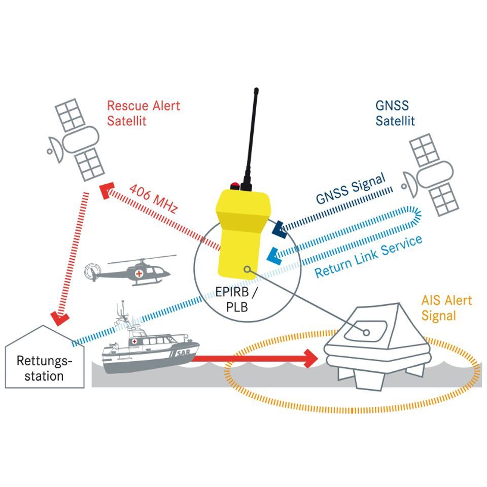 Return Link Service informiert den Auslösenden der EPIRB über die Zustellung der Notmeldung. Ein über das Galileo-Satellitennetzwerk gesendetes RLS Signal bestätigt die Übermittlung der Notmeldung sowie den genauen Standort und die Kennung des Senders. Ein gut sichtbares blaues Blinklicht zeigt den erfolgreichen Empfang der Return Link-Meldung vom Galileo-Satellitennetzwerk durch die EPIRB an. Das beruhigende Gefühl, dass Rettungskräfte wissen, dass eine EPIRB aktiviert wurde und ihren Standort kennen, trägt dazu bei, den Stress in Notsituationen zu reduzieren.