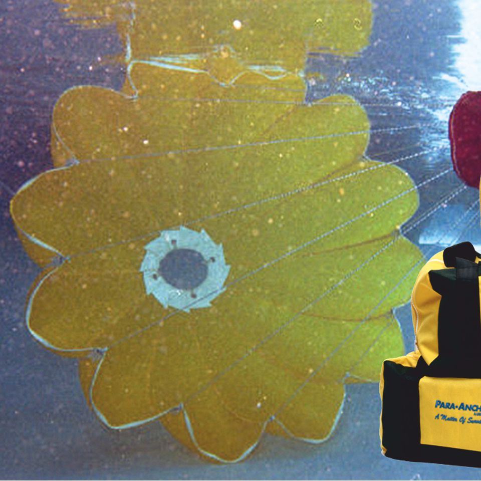 Die Para-Anchors werden für diese extremen Bedingungen aufgrund jahrelanger Erfahrung gebaut: Es kommt stabiles, dehnungsfreudiges Nylon-Material zum Einsatz, alle Ecken, Anschlagpunkte und Verbindungen werden mit Polyestergewebe verstärkt. Die Halteleinen aus Nylontrosse sind enorm stark, durch Edelstahlösen geführt und laufen auf einem speziellen Wirbel zusammen.